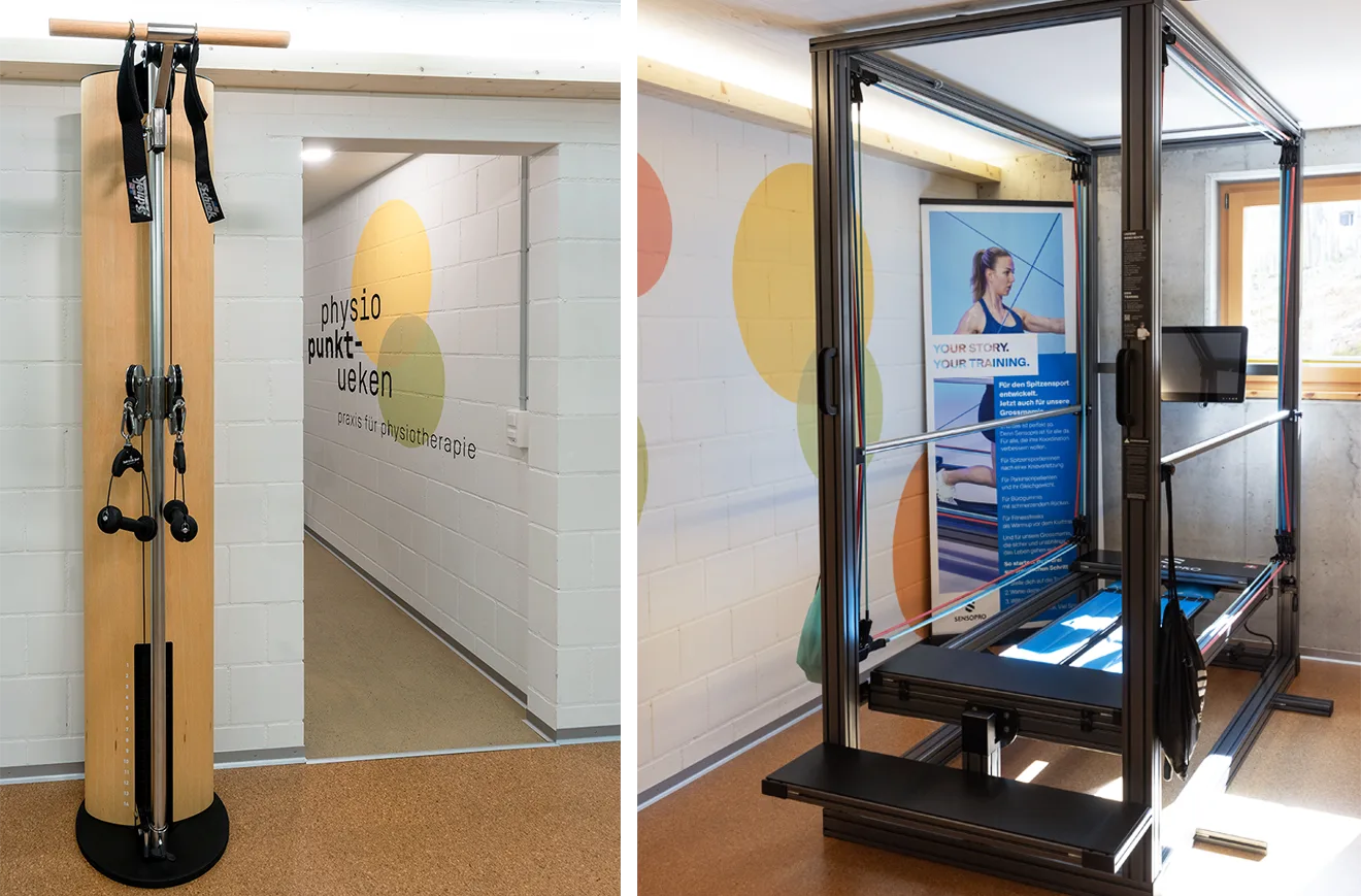 Die Praxis besteht aus zwei seperaten Therapieräumen und einem kleinen Aktivraum, welcher mit neusten Geräten ausgestattet ist.